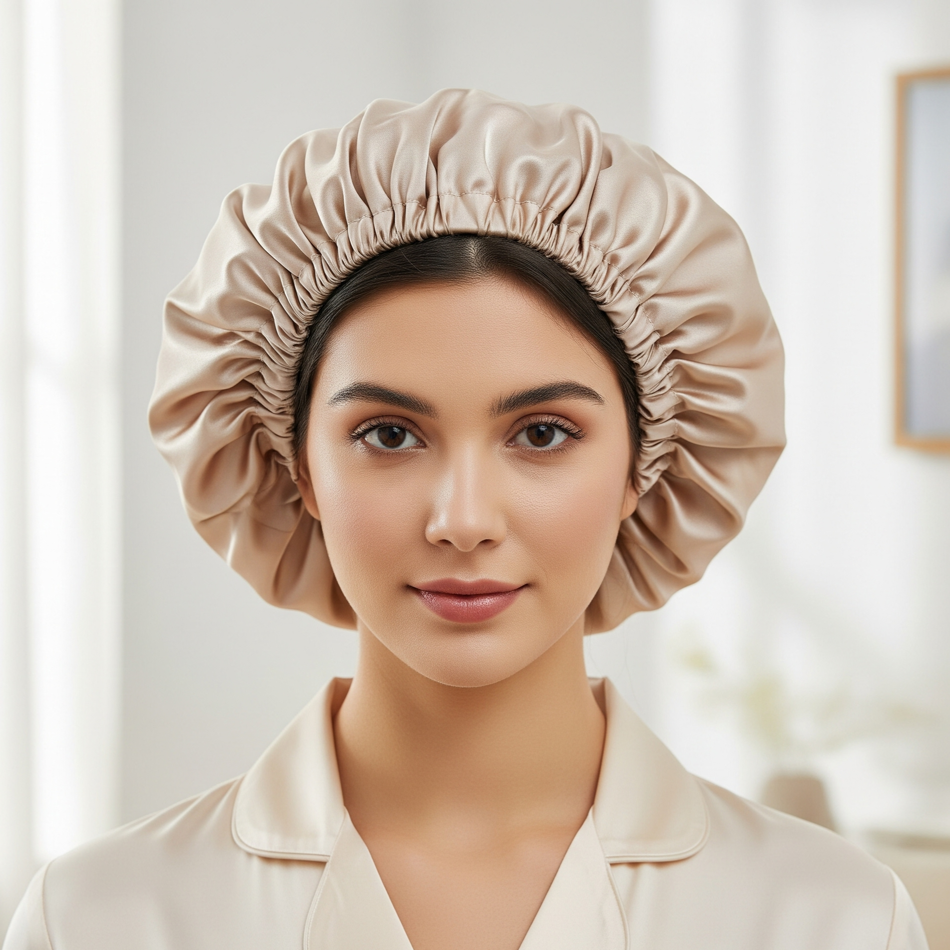 Unsere Seiden-Nachthaube wurde speziell entwickelt, um die Gesundheit und Schönheit Ihres Haares im Schlaf zu bewahren. Ihre weiche, glatte Textur reduziert Reibung, minimiert Haarbruch, Frizz und Verfilzungen und erhält gleichzeitig die natürliche Feuchtigkeit der Haarfasern.