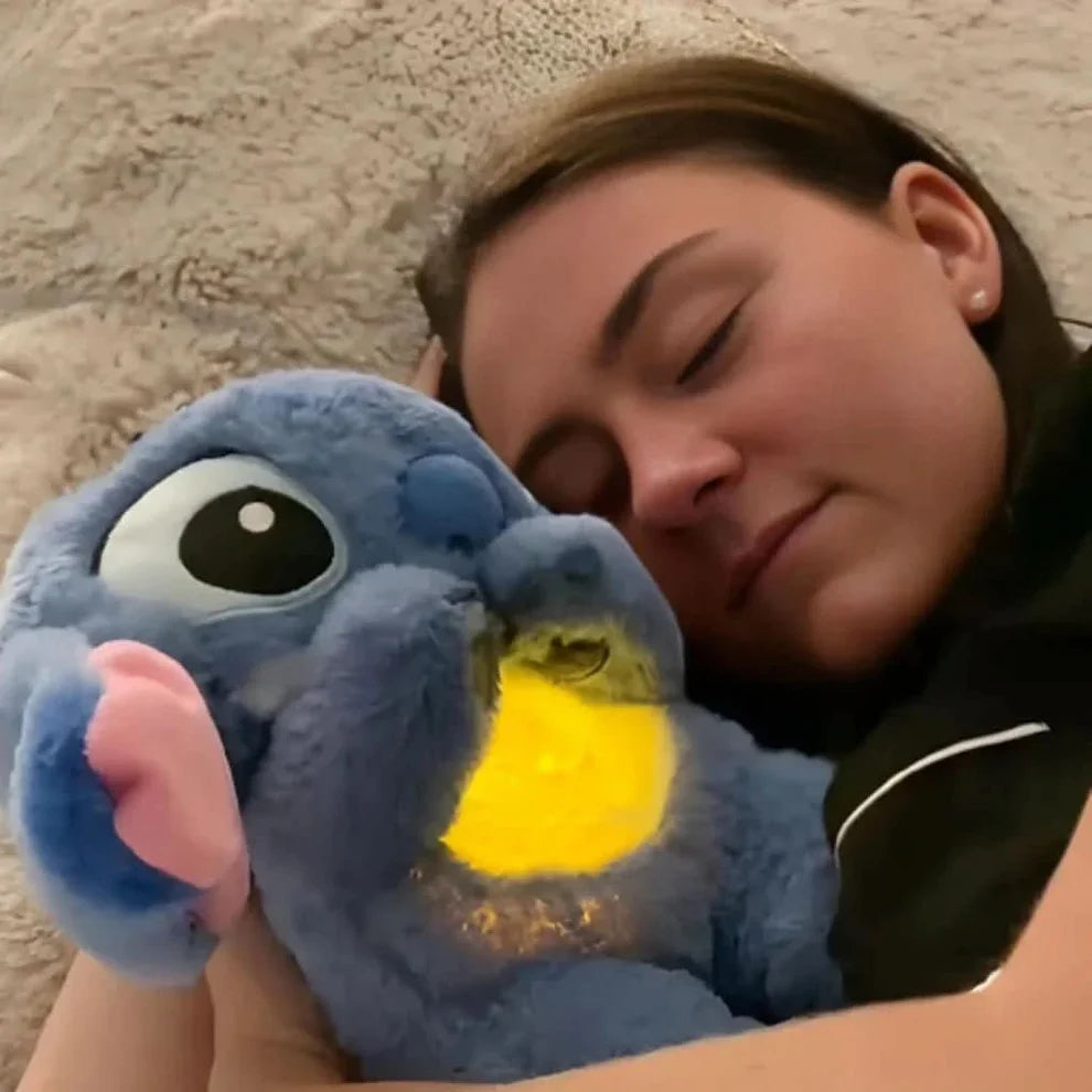 La peluche Stitch qui respire offre un apaisement immédiat grâce à sa respiration douce et sa berceuse relaxante pour les enfants.